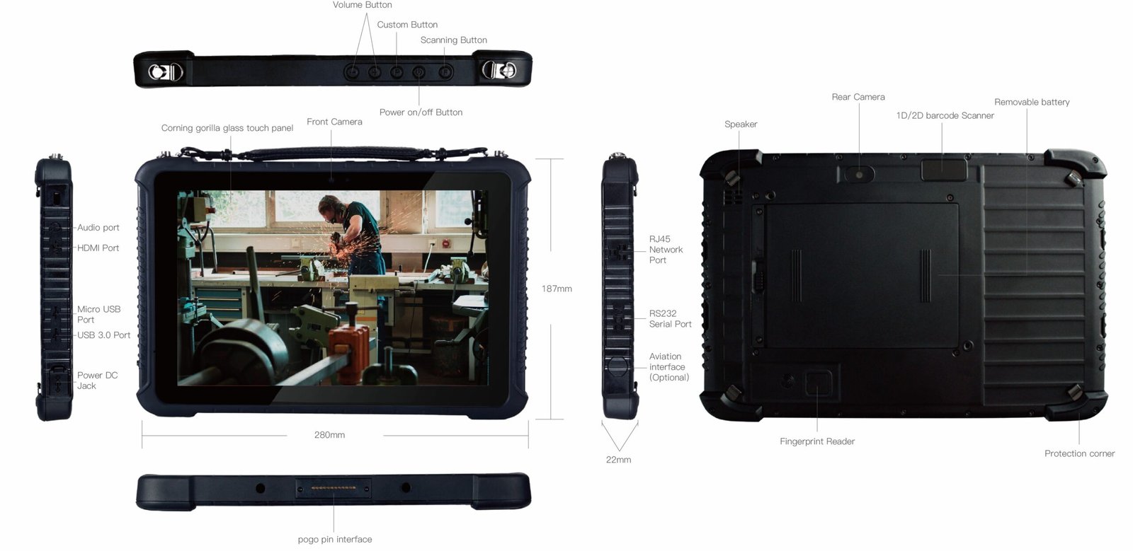 | Rugged Durability | Waterproof and dustproof rate:IP65; Ruggedness: comply with MIL-STD-810G |