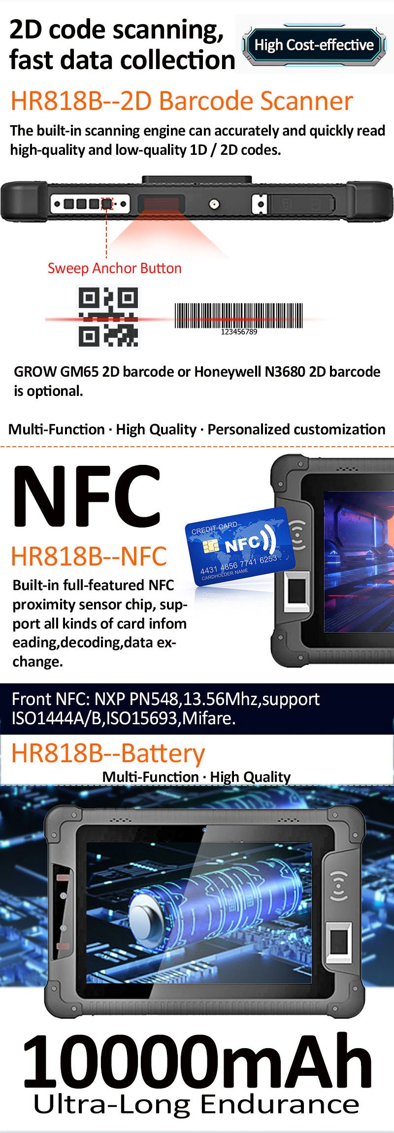 | Front NFC | 13.56Mhz,support ISO1444A/B,ISO15693,Mifare; |