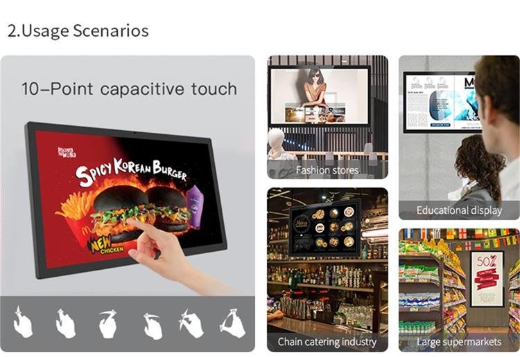 تتضمن هذه اللافتات الرقمية الشاشة التي تعمل باللمس بالسعة الوظيفة, السماح للمستخدمين بالتفاعل مباشرة مع الشاشة. يمكن للعملاء التعامل مع المحتوى, تصفح المعلومات, and even place orders or make selections—all with the touch of a finger. هذه الميزة تعزز تجربة المستخدم من خلال توفير بديهية, التنقل المستجيب, سواء كنت تدير أكشاك تفاعلية أو قوائم رقمية. إن القدرة على التفاعل مع المحتوى تجلب مستوى جديدًا من المشاركة, جعلها مثالية للتطبيقات التي تواجه العملاء.
