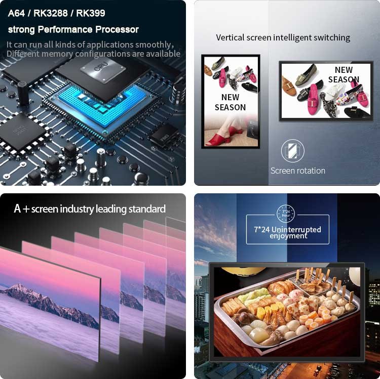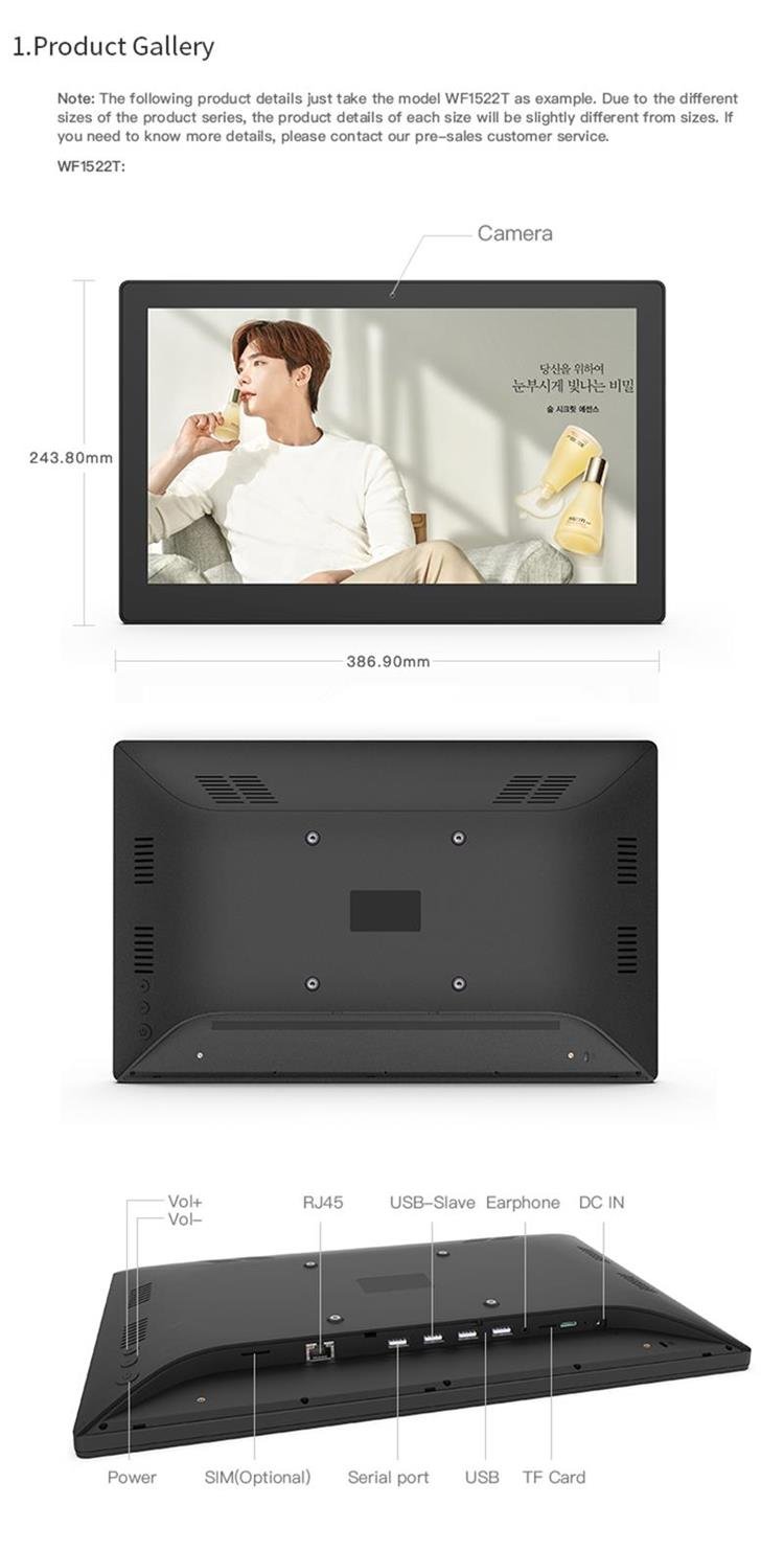 ملكنا 15.6 شاشة لمس اندرويد بوصة يقدم صورًا حية وتفاعلًا سريع الاستجابة, مثالية لتطبيقات اللافتات. يضمن هذا الجهاز اللوحي المثبت على الحائط أداءً موثوقًا بالإضافة إلى سهولة التثبيت. يتميز بشاشة من الطراز الأول ومعالج قوي, يعد هذا الجهاز مثاليًا لعرض المحتوى وجذب الجماهير في سيناريوهات مختلفة.