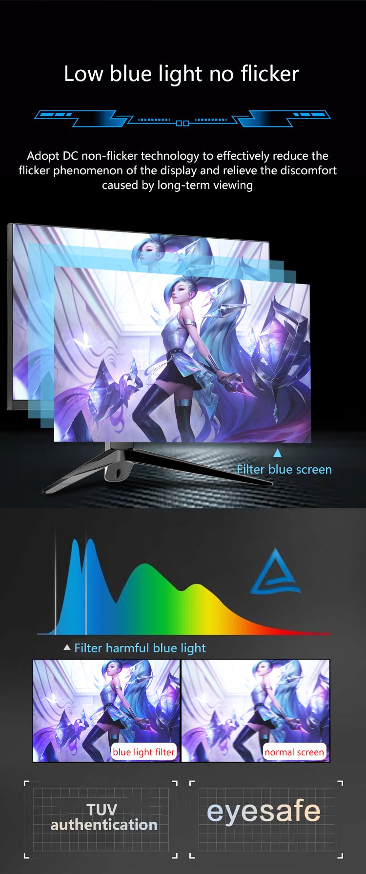 Sincronización gratuita de AMD / Luz azul baja / Ultra vívida / Sin parpadeo / Cruz / Over drive