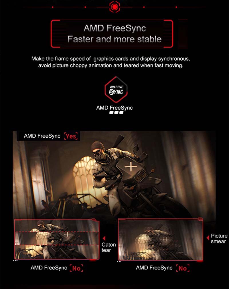 | Gaming Advantange | AMD Free Sync/Low blue light/Ultra vivid/Flicker-free/Cross hair/HDR/Over drive | ||||||||||||||