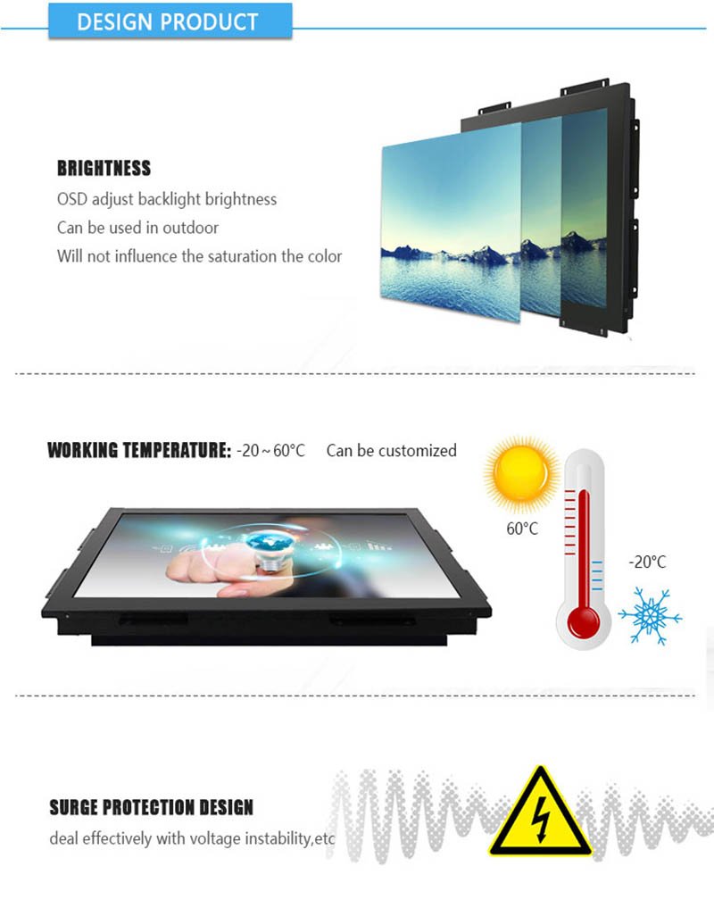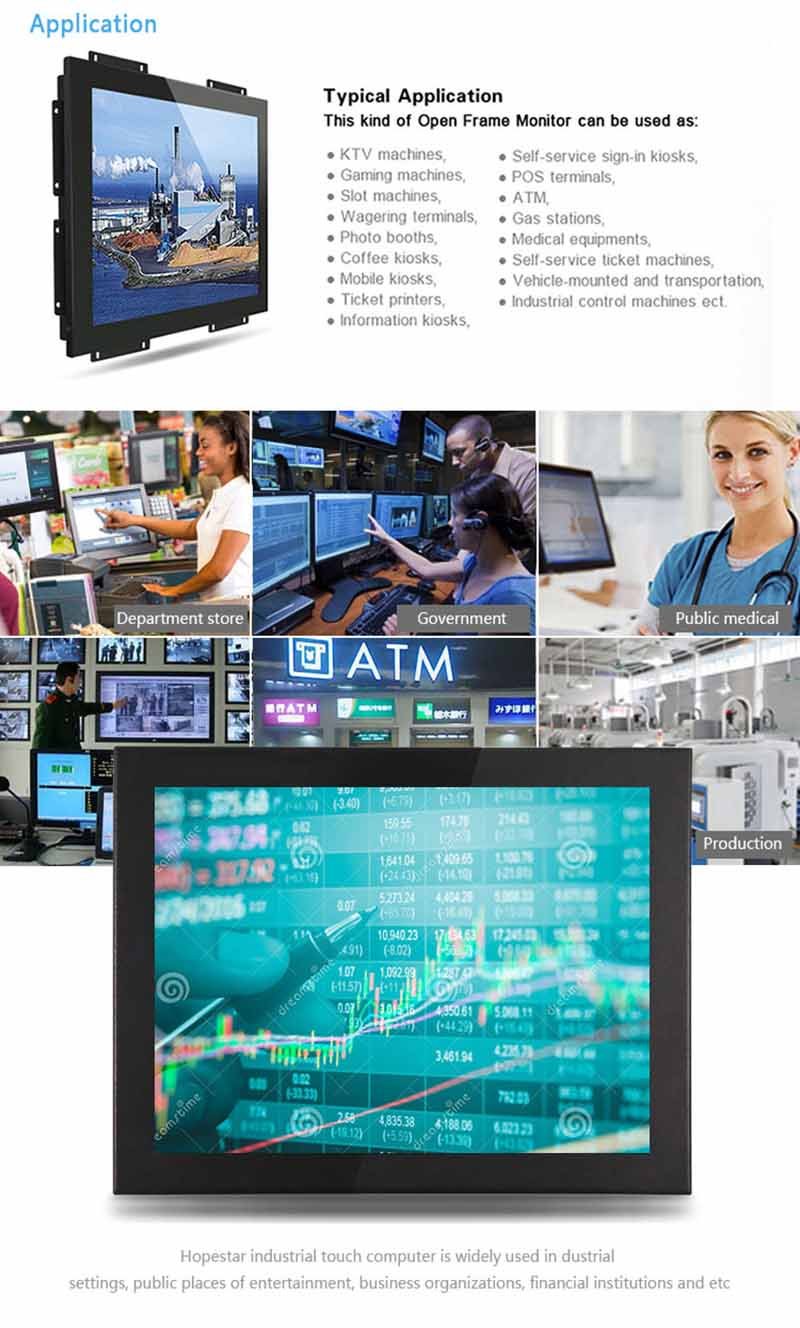 The open frame touch screen monitor is perfect for kiosks, casino and amusement, retail self-service, and industrial automation environments , welcome inquiry for the industrial monitor 1000 nits .