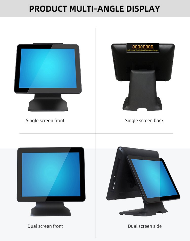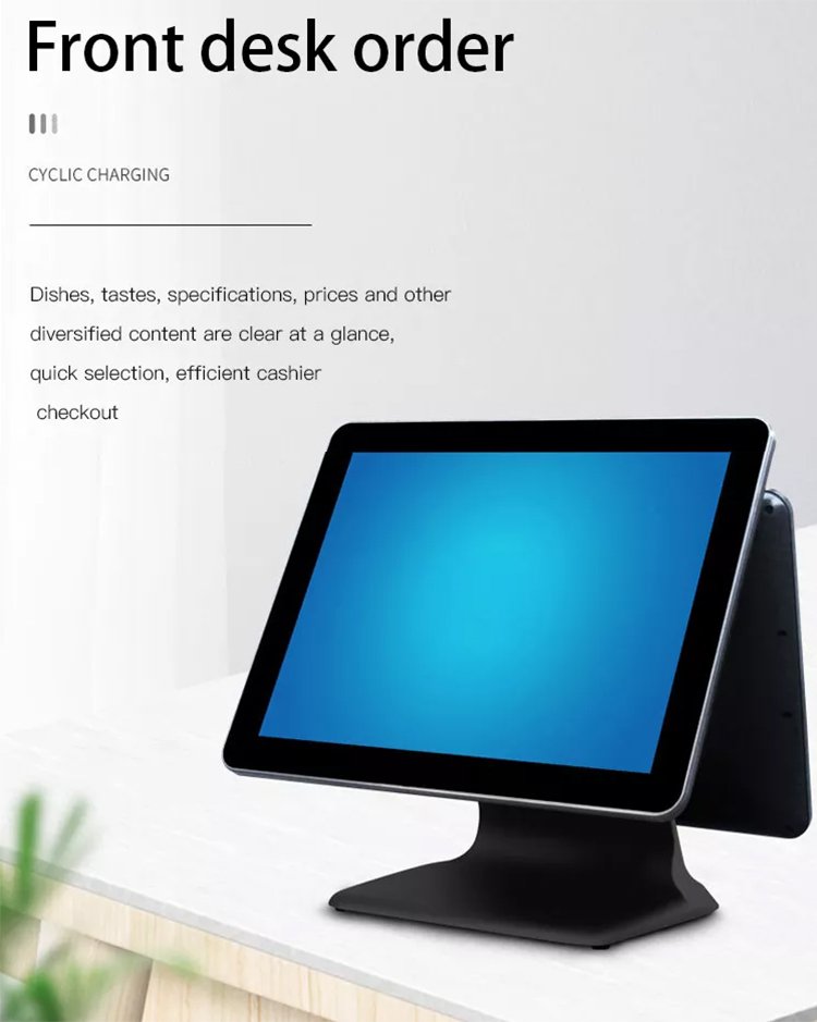 Upgrade your POS arrangement with our touch dual screen POS terminal. Featuring a 15-inch touch screen and the Windows 10 system, it guarantees smooth operation, ideal for retail and hospitality sectors. Its dual screen capability along with top performance makes it a versatile and reliable choice for point of sale environments.