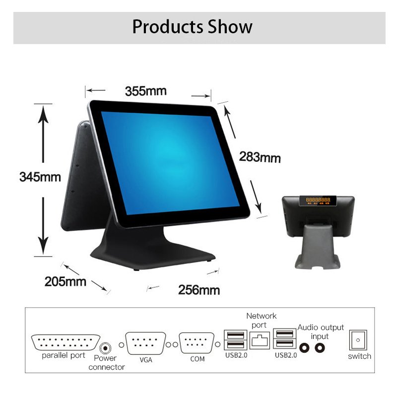 Dual screen POS system 15 inch also with multi spare parts for option , like cash drawer, 1/2D Scanner , printer etc.