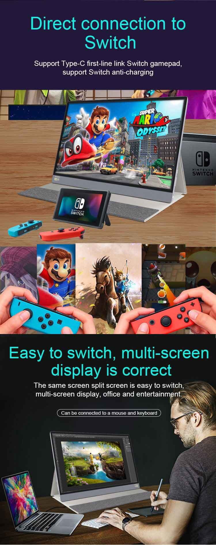2. Порт type-c поддерживает режим зеркала мобильного телефона и компьютера и обменивается видео и файлами; 3. Он может соответствовать окнам 10 система, иметь устройство вывода HDMI как двойной дисплей, поддержка входа HDMI HD1080. |