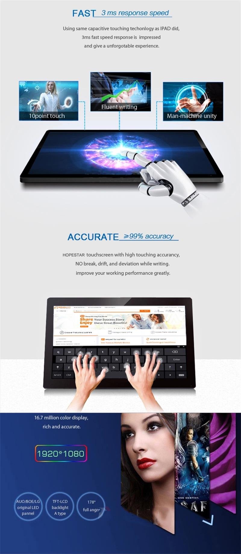 • Size:10.1 to 55 inch Available